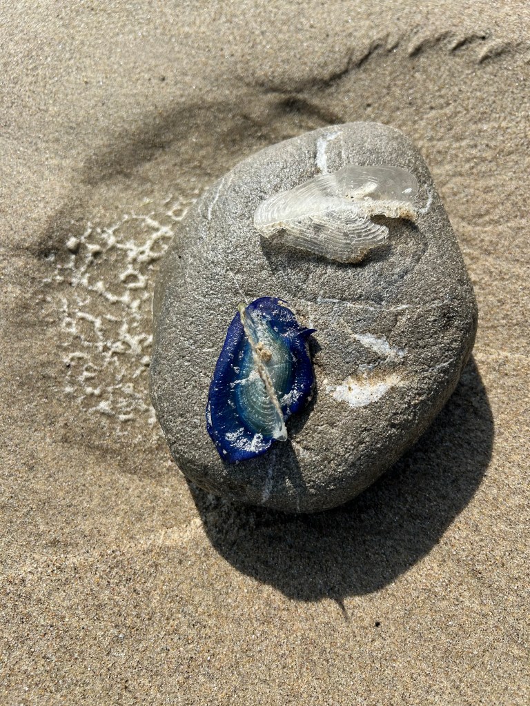 And down at the beach the By-the-Wind Sailors have washed up by the dozens.